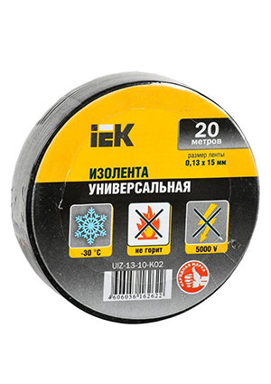 UIZ-13-10-K02, Изолента ПВХ 0.13х15мм, рулон 20м черная